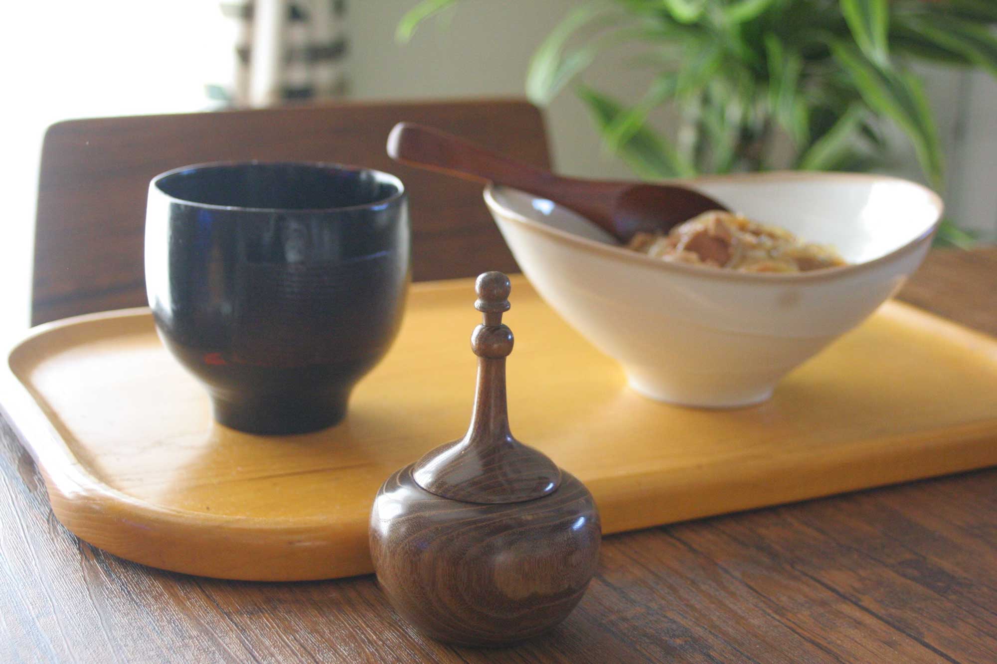 毎日触りたくなるような、艶のある七味入れは木地そのものを磨いて仕上げました。