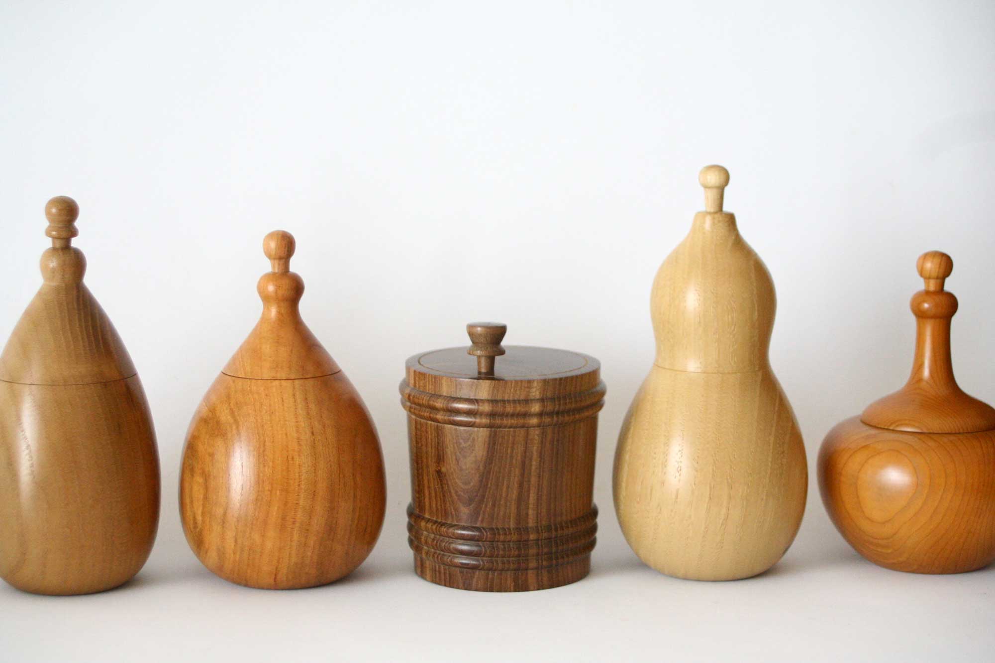 定番のひょうたん形からユニークなオリジナルの形まで何種類かありますが、どれも滑らかで美しいカーブに木地師の技術が光ります。 七味を入れやすい大きな口に、振出しの細い口も熟練の技術で丁寧に挽いています。しっかりと蓋が閉まりますので安心して置いておけます。
