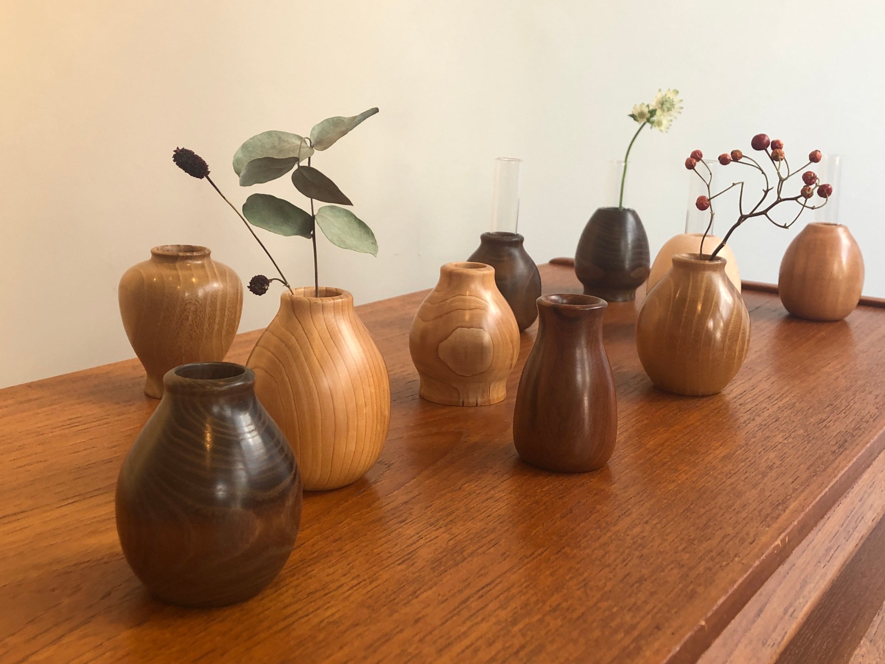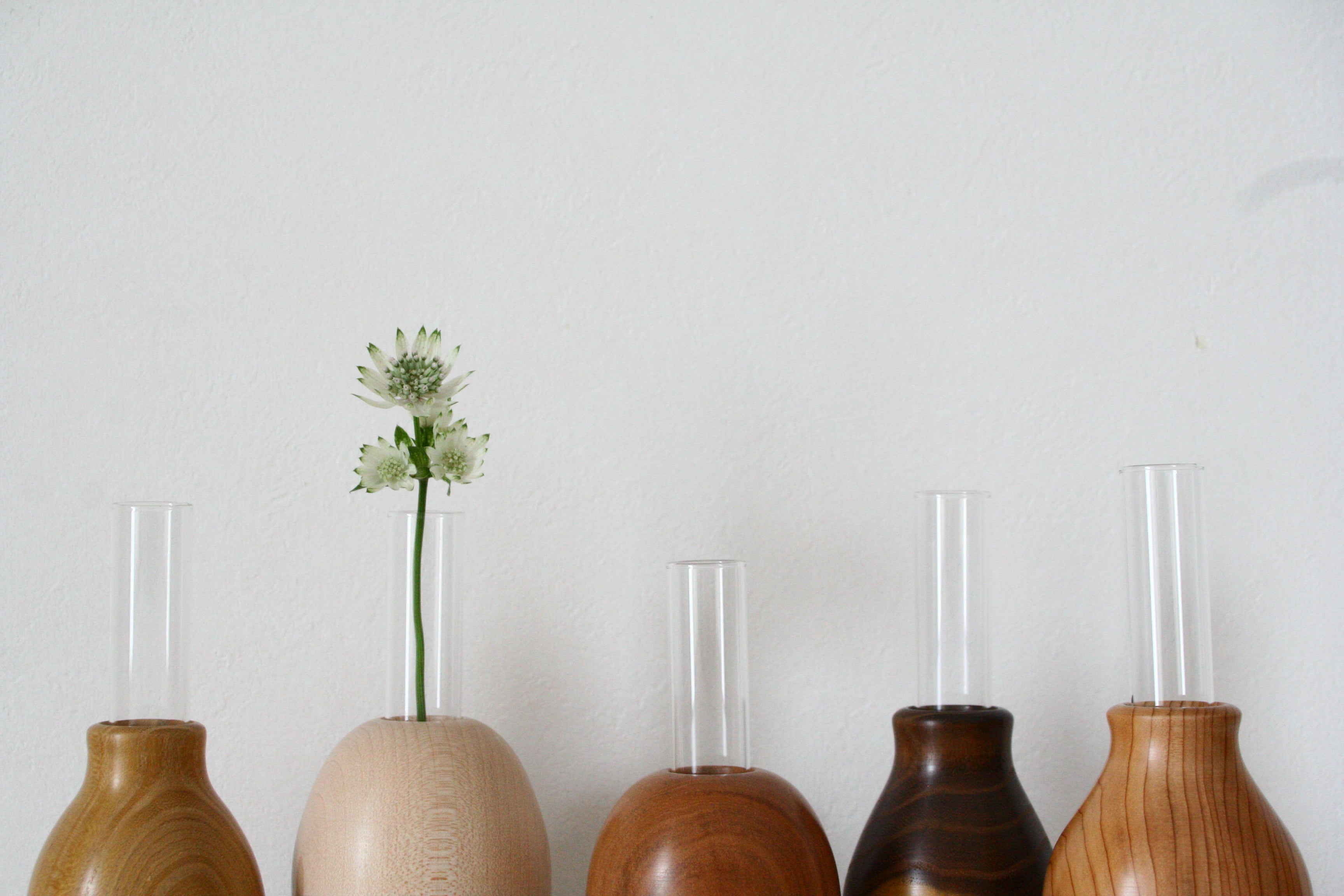 木のあたたかみが優しい空間を演出する一輪挿しです。